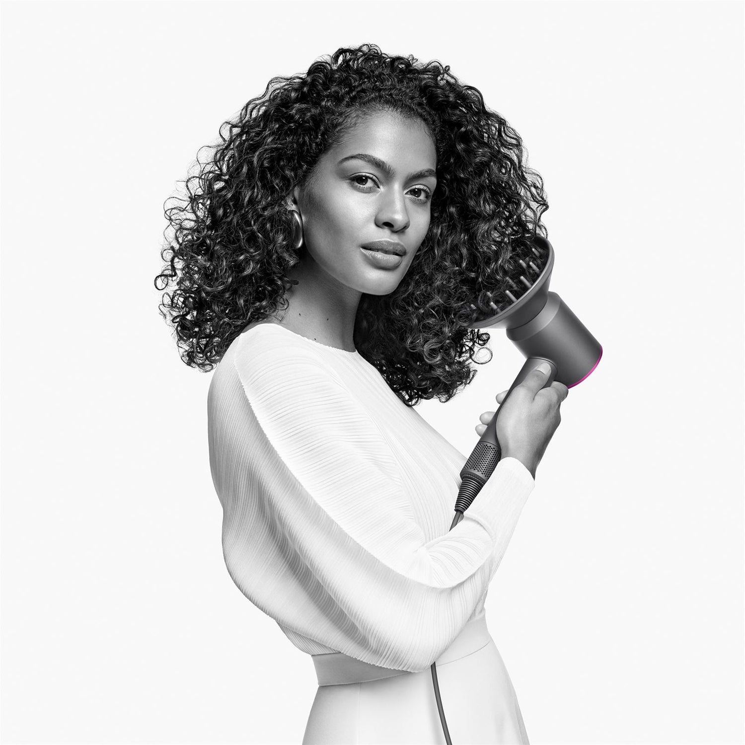 Der erste Haartrockner mit magnetischen Aufsätzen, die sich leicht austauschen und drehen lassen. Beinhaltet den Aufsatz zur Bändigung fliegender Haare für ein geschmeidigglänzendes Finish.